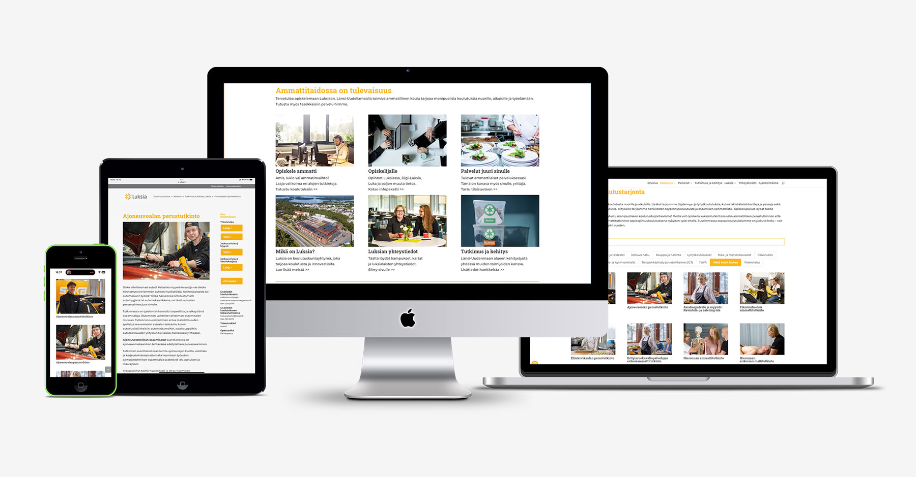 Sivut toimivat kaikilla päätelaitteilla pöytäkoneesta tabletteihin ja kännykkään ja skaalautuvat itsestään sopivaan kokoon. Näin ne näyttävät aina yhtä hyviltä ja ovat helppolukuisia kaikilla välineillä.